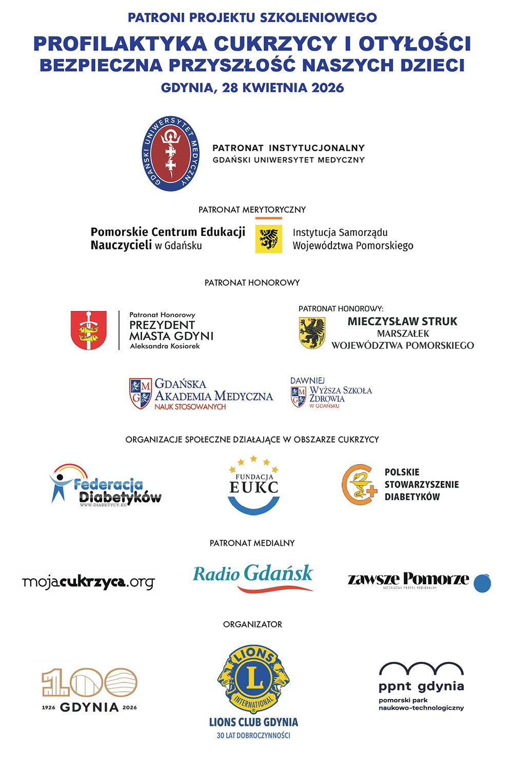 Konferencja otrzymała patronat Instytucjonalny Gdańskiego Uniwersytetu Medycznego, patronat honorowy Gdańskiej Akademii Medycznej Nauk Stosowanych, patronat honorowy Prezydent Miasta Gdyni oraz patronat merytoryczny Pomorskiego Centrum Edukacji Nauczycieli.