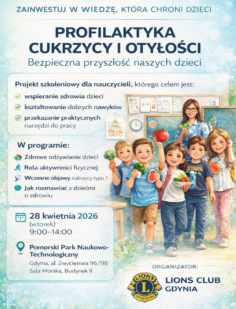 Projekt "Profilaktyka cukrzycy i otyłości - bezpieczna przyszłość naszych dzieci" ma charakter społeczny i został opracowany oraz będzie realizowany przez specjalistów z zakresu zdrowia, edukacji i dietetyki. Jego zasięg obejmie nauczycieli, uczniów oraz rodziców ze wszystkich szkół podstawowych, średnich i przedszkoli w Gdyni. Szacunkowo inicjatywa dotrze nawet do 45 tysięcy odbiorców, co czyni ją jednym z największych lokalnych przedsięwzięć profilaktycznych w regionie.